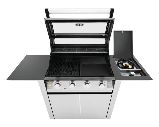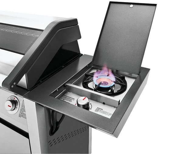 Our integrated & powerful side burner extends outdoor cooking. Saute side vegetables, stir sauces or just cook the onions in a separate pan. If not needed, fold down the lid for a right hand table.