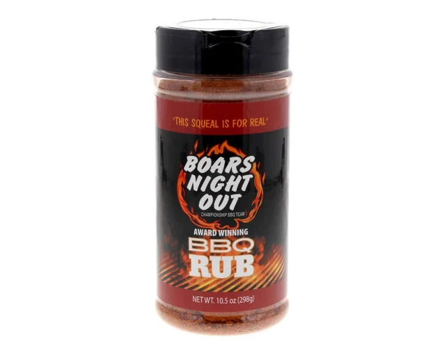 A rub from the legendary Boars Night Out World champion BBQ team who have been competing professionally since 2006. The squeal is for real! Bring the Championship BBQ flavor of BNO to your back yard with this popular gourmet dry rub! Use it on pork, chicken, or fish and discover this winning flavor profile!