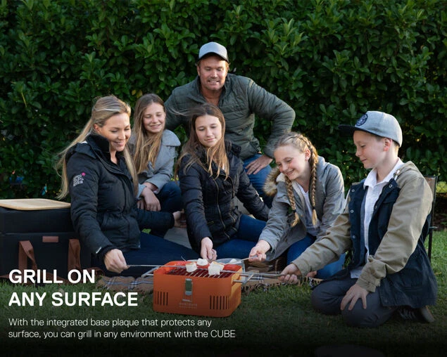 While a built-in heat protection shield keeps CUBE safe to handle so it can be used almost anywhere.