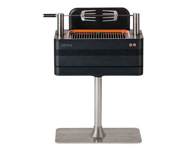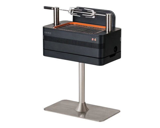 With the Fast Flame Ignition System™ (9 minutes), featuring an electric element, you can get your charcoal burning at just the right temperature in just 10 minutes. With the patented Rotiscope Technology™, you can set up an authentic, top-of-the-line rotisserie, powered by a discrete motor, in moments. The jaw-like Cliplock Forks™ ensure everything from chickens to suckling pigs are kept firmly in place on the rotisserie rod as it turns. From the subtly integrated rotisserie, to the retractable power cord, the FUSION™ is the perfect balance of function and form, taking design cues from minimalist Danish design. Easy to use and take care of. The porcelain enamel firebox and charcoal tray are easy to clean after use. Make your FUSION™ even more versatile with the free-standing pedestal and move your barbeque with ease.