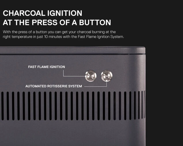 A world first – press a button to ignite your charcoal, thanks to the Fast Flame Ignition Systemâ„¢. Ready to barbeque in 10 minutes.