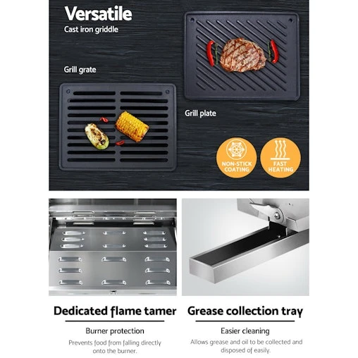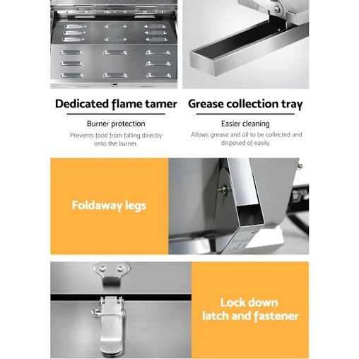 Have BBQ will eat. And the Grillz Portable Gas BBQ is just perfect for a BBQ anytime, anywhere. Made from durable and high quality stainless steel, the BBQ comes with a convenient fold-up design with retractable steel legs, large front carry handle and a locking lid. Two 10,000BTU stainless steel burner with high heart conduction for better efficiency, safe piezo electric twist start ignition, integrated thermometer for enhanced cooking, grease collection tray for easy cleaning after and a dedicated flame tamer to prevent food waste from dropping onto the burner. Together with its large cooking area, the Grillz Portable Gas BBQ is right at home with sumptuous meals ready in minutes. Get yours today.