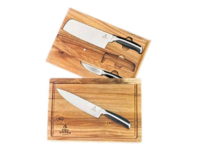 Wooden Cutting Board With Pocket Draw- Acacia Wood (380mm (420mm including handle) x 270mm x 55mm)