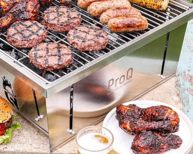 The ProQ Flatdog is the ultimate fold-flat portable charcoal BBQ! It’s re-usable, high quality and easily collapses into a compact size to take up minimal space, packing down to as thin as a laptop (25mm).