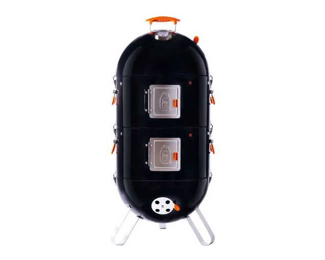 This highly versatile BBQ Smoker can grill, roast or smoke food to perfection, the perfect smoker for those starting out or looking for a reliable everyday barbecue-smoker. In-built lid gauge and multiple vents allowing you to control your temperature with ease. Perfect size for families and barbecue parties! Also works as a great portable grill for the beach. Large range of accessories available to make your smoker even more versatile. Made from highest quality materials, with a 0.8mm plate steel body coated in durable porcelain it will resist the elements for years to come. All fittings throughout – side handles, clips, and nuts and bolts – are rust resistant Stainless Steel including the grills.
